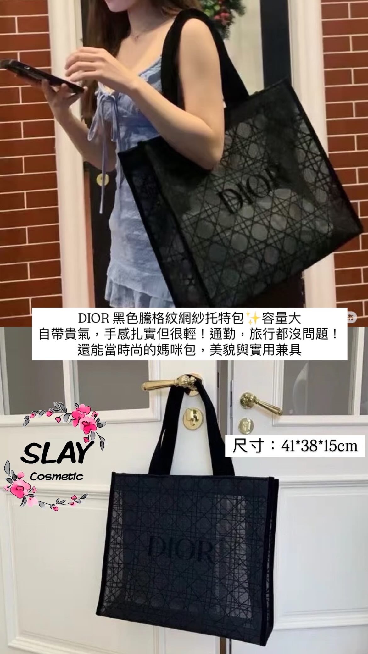 🖤 DIOR 黑色騰格紋網紗托特包=輕・大・貴氣爆棚